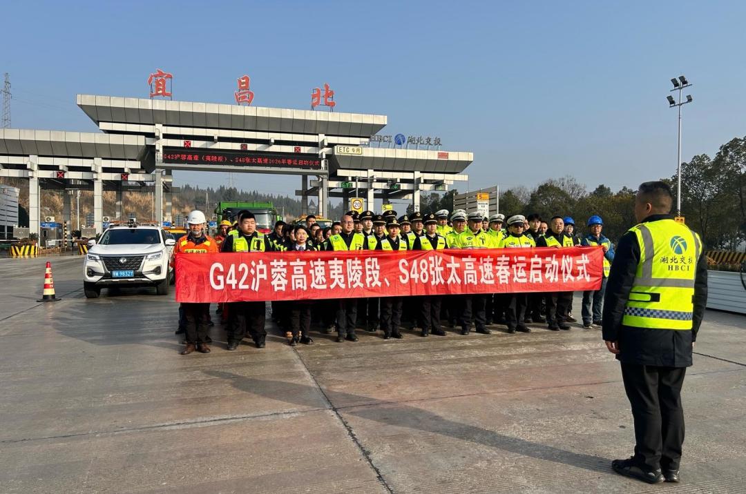 当天上午 9 时 30 分,宜昌北高速收费站广场上,由湖北交投宜昌运营公司牵头,联合高速交警、路政、养护、应急救援等多部门组成的春运联动小组,举行了春运启动仪式。现场,一场贴近实战的应急救援演练同步上演,模拟一名司机在沪蓉高速夷陵段行驶时突发车辆故障,停靠应急车道报警求助后,多部门联勤联动快速响应处置,为春运突发情况处置积累了实战经验。
