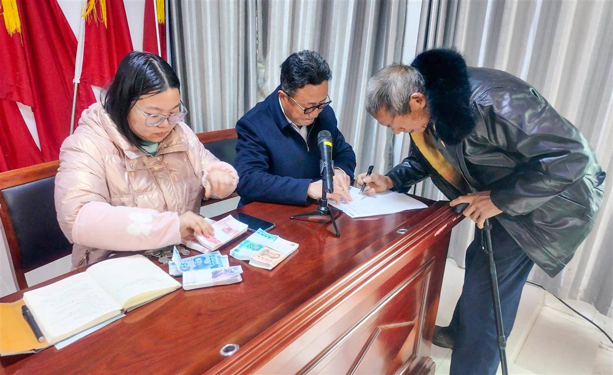 老人现场收到500元福利津贴。(通讯员 赵媛媛 摄)