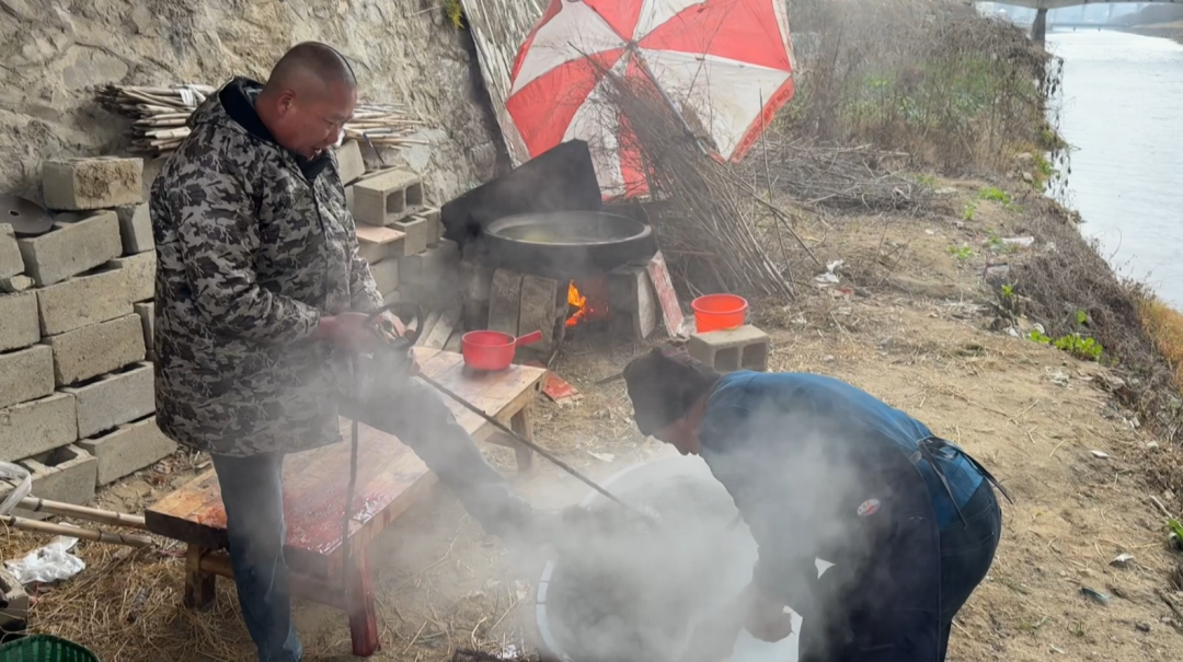 宰杀间隙,吴绪珍还会细心地帮着主人家初步清理内脏,翻肠、清洗,每一个动作都娴熟细致,不放过任何一个细节。“师傅,这个过程叫什么啊?”记者忍不住问道。“翻肠嘛!”吴绪珍手上不停,耐心解答,“翻肠翻出它的‘垃圾’嘛!”简单朴实的话语,道出了手艺人的细致与坚守,也藏着蕲北人对美食的敬畏。