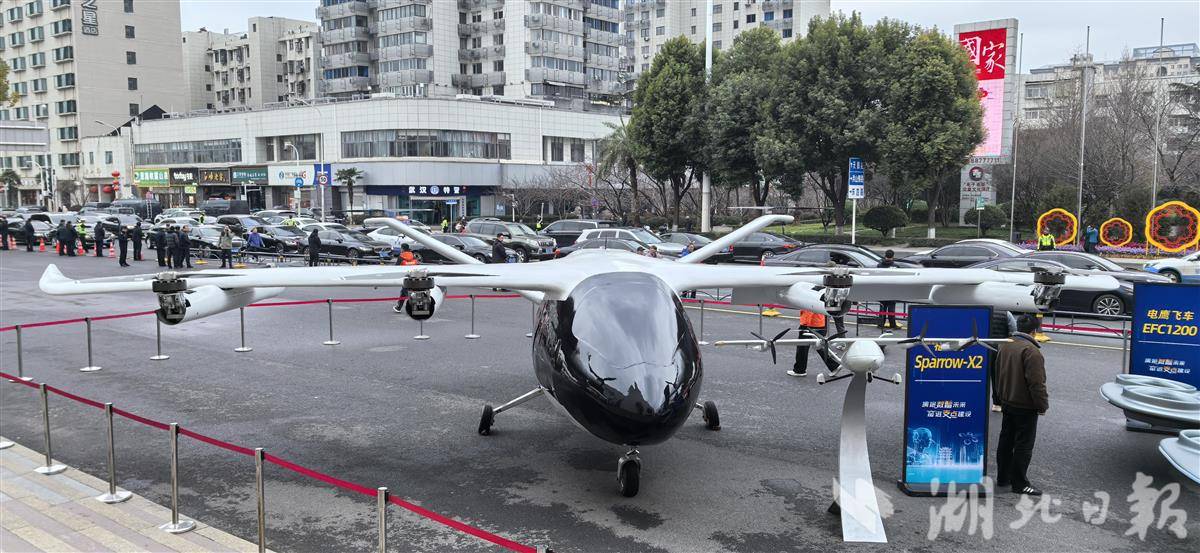 2月24日,春节后的首个工作日。武汉洪山礼堂门前,4款湖北造eVTOL(电动垂直起降飞行器)的集中展示,引来现场众人的关注。