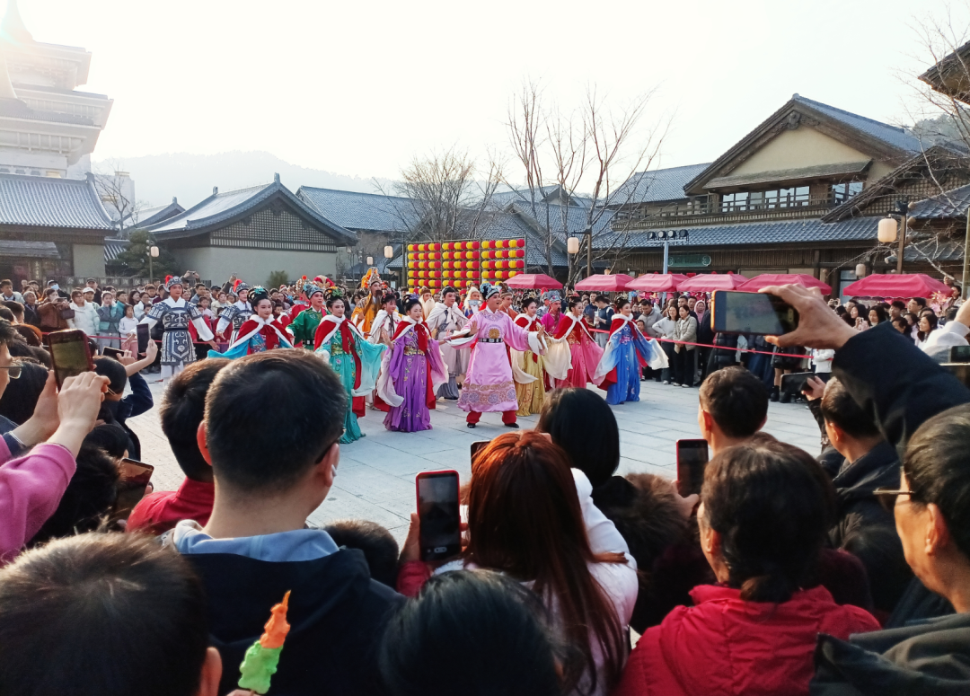 作为黄梅文旅的标杆,东山问梅村在今年春节推出AI无人机焰火秀、鱼灯巡游、新编贺岁大戏《天官赐福》以及孔明灯祈福等一系列活动,吸引游客纷至沓来。