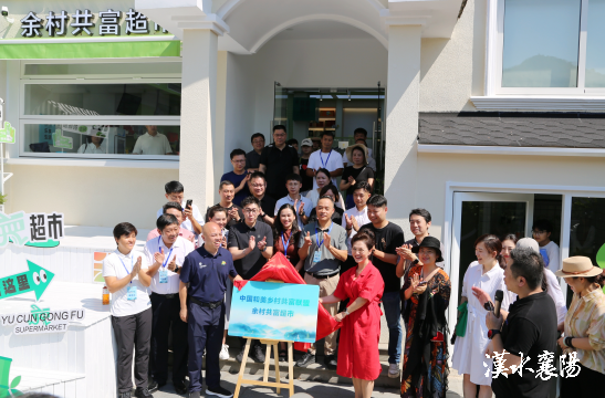 ▲2025年8月,共富超市联盟1号店在浙江省余村村挂牌成立,闵洪艳(左二)应邀参加揭牌仪式。