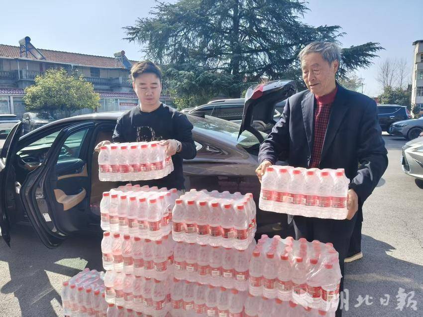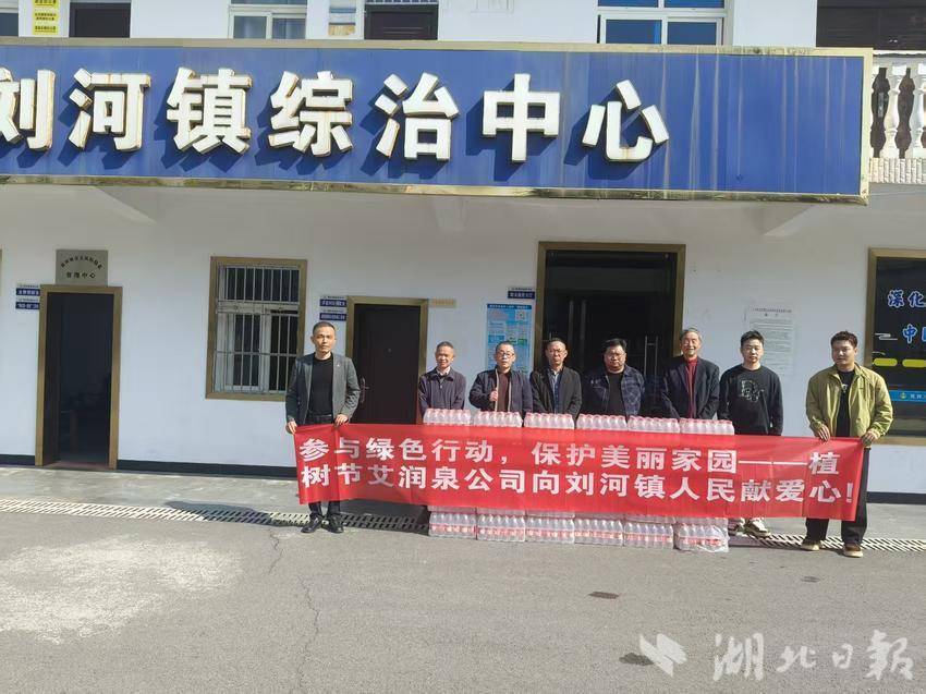活动现场,来自刘河镇镇直机关(财政、国土、城建)、医院和中小学校的近300名党员干部职工热情高涨、分工协作,挥锹铲土、扶苗填坑、提水浇灌,每一个环节都一丝不苟、有条不紊。艾润泉(湖北省)水业有限公司爱心团队负责人方义华教授,带领团队成员周政、罗湘湖、高翔、郑淮、童恒峰一行5人专程赶赴现场,送去30件矿泉水,助力地方生态建设;鸿运(深圳)服饰公司总经理罗湘湖也专程从深圳赶来,以实际行动表达对家乡的深情。作为此次活动的特别参与者,方义华与罗湘湖的到来,为活动增添了浓厚的桑梓情谊。