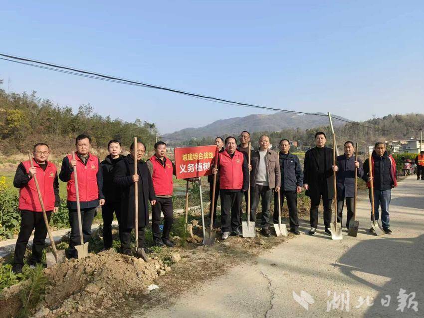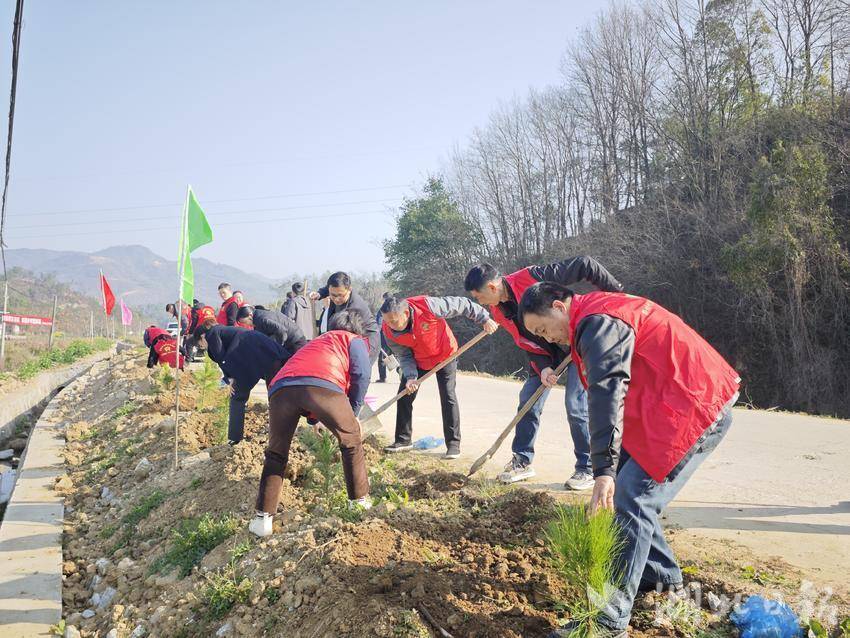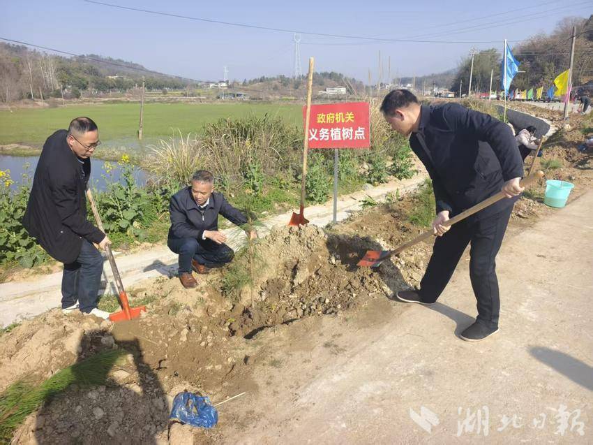 (通讯员 周政 罗湘湖 郑淮 刘超 胡志清) 春回大地万物苏,植树添绿正当时。在植树节来临之际,3月11日,蕲春县刘河镇黄坪村通村公路沿线人头攒动、红旗招展,一场义务植树活动在此火热开展,刘河镇干部群众与社会爱心企业携手,以实际行动为家乡增添新绿,共筑生态家园。此次义务植树活动得到刘河镇党委、政府的高度重视,更吸引了社会力量积极响应。刘河镇党委书记陈虎等党员干部,拿起铁锹与群众一同投入劳动,践行绿色发展理念,凝聚起共建生态家园的强大合力。