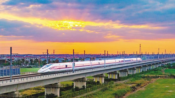 2025年10月22日,全球最快高铁CR450动车组行驶在沪渝蓉高铁武汉至宜昌段。(湖北日报全媒记者 柯皓 摄)