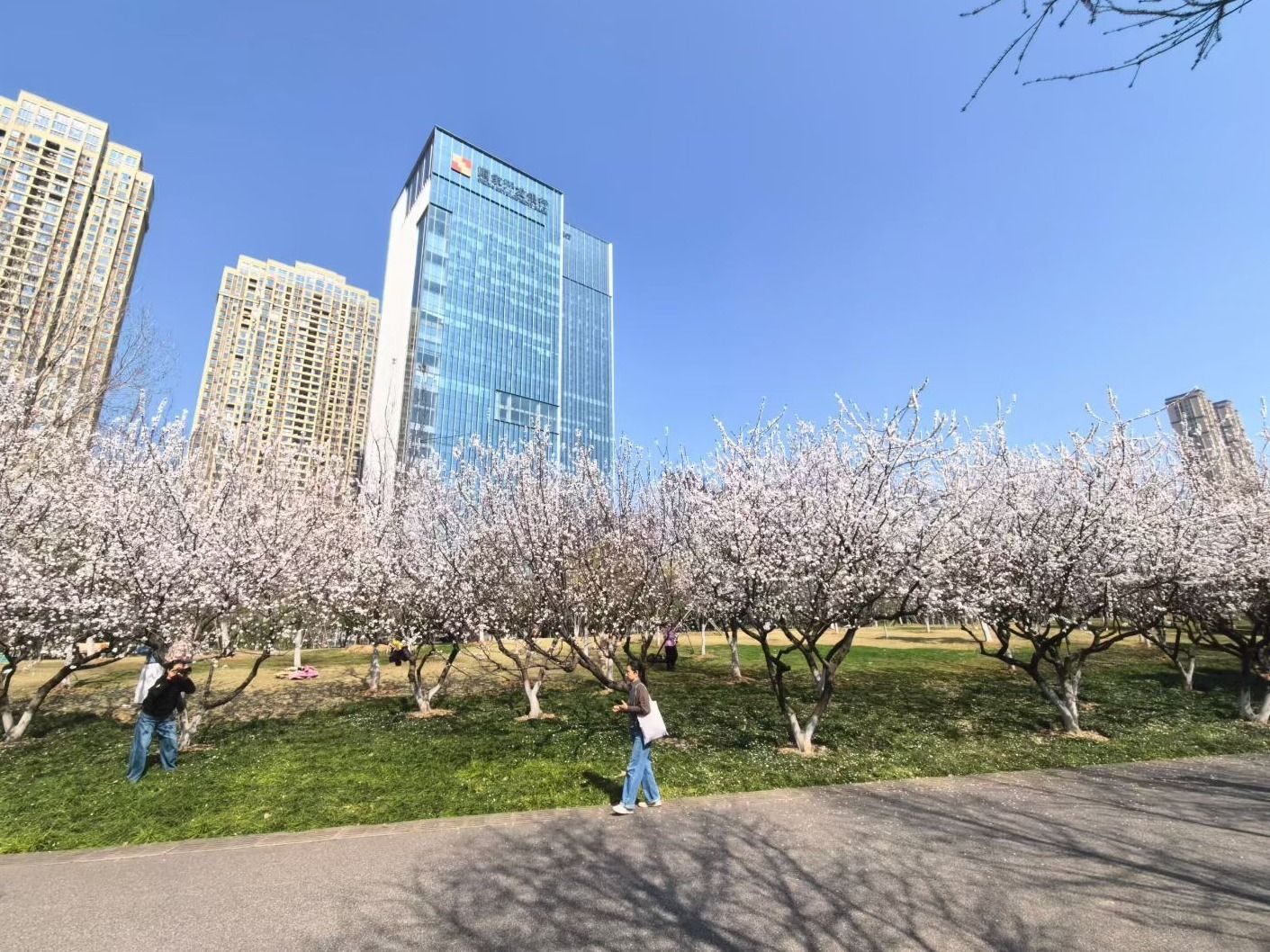离开主干道的喧嚣,记者拐进沙湖片区,周遭瞬间安静下来。沙湖公园像是城市中心的“绿肺”,环湖绿道上,跑步的人三三两两,几只水鸟掠过湖面,划开一道涟漪。市民秦先生最近两天清早都在公园内散步,“玉兰和杏花这几天正好,但大家最惦记的还是樱花。再过一周左右,1000多株樱花即将盛放,亲水平台那边最集中。樱花映着湖水、绿树,特别好看。”