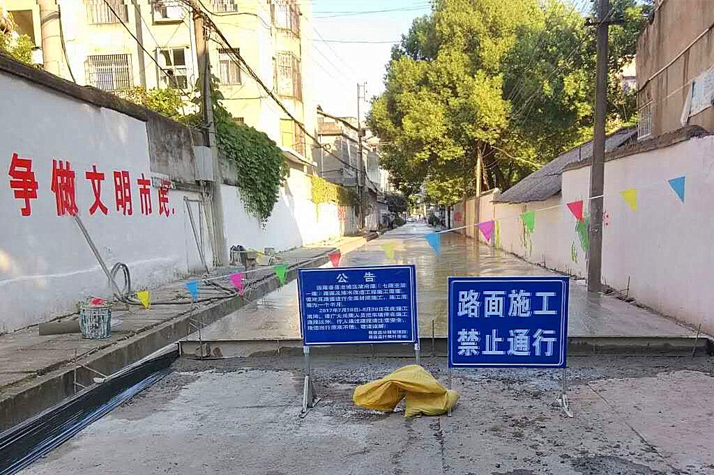 云上蕲春讯 通讯员李佳报道 漕河镇付畈村政府路、体育路及十里畈村路路面改造工程起于漕河七路,止于漕河一路,共计1公里,于7月18日进场。由于此三条公路路面破损严重,雨天严重积水,严重影响村民及附近学校学生通行。按照县政府要求,为了不影响9月1日入学学生通行,该工程必须在8月中旬完成施工,工程重点为“改善路面、完善排水设施”。