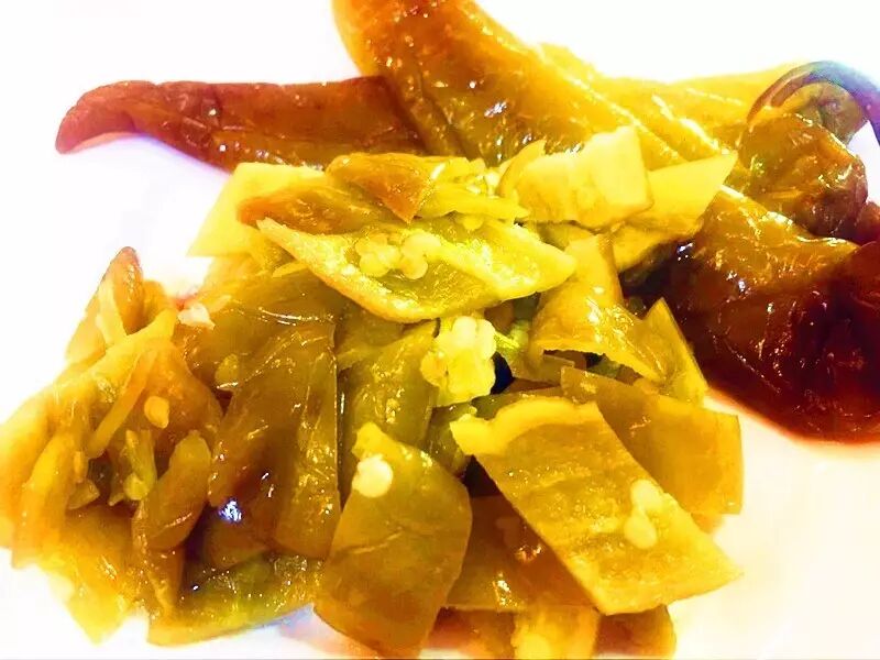 酸辣椒是陈大厨亲手腌制的,土法封坛,金黄透亮