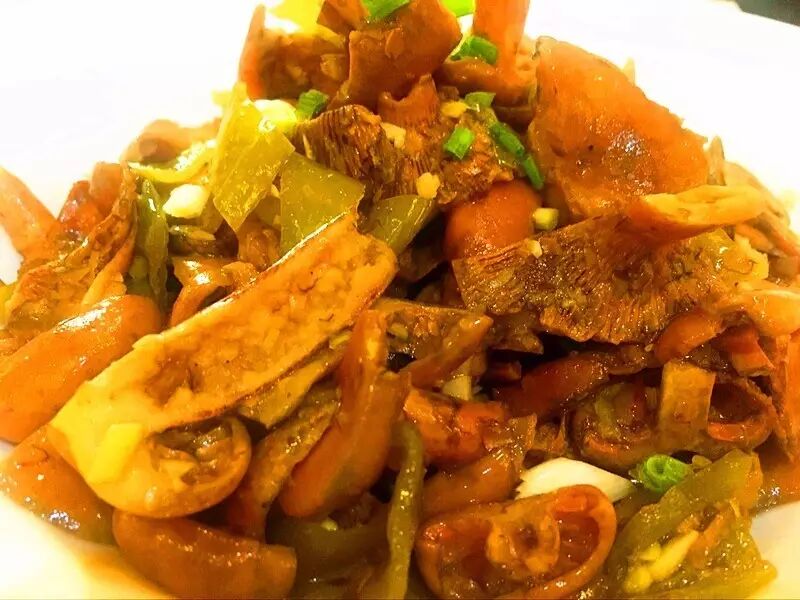 一盘活色生香的酸辣椒炒野枞树菇香气扑鼻的出锅了