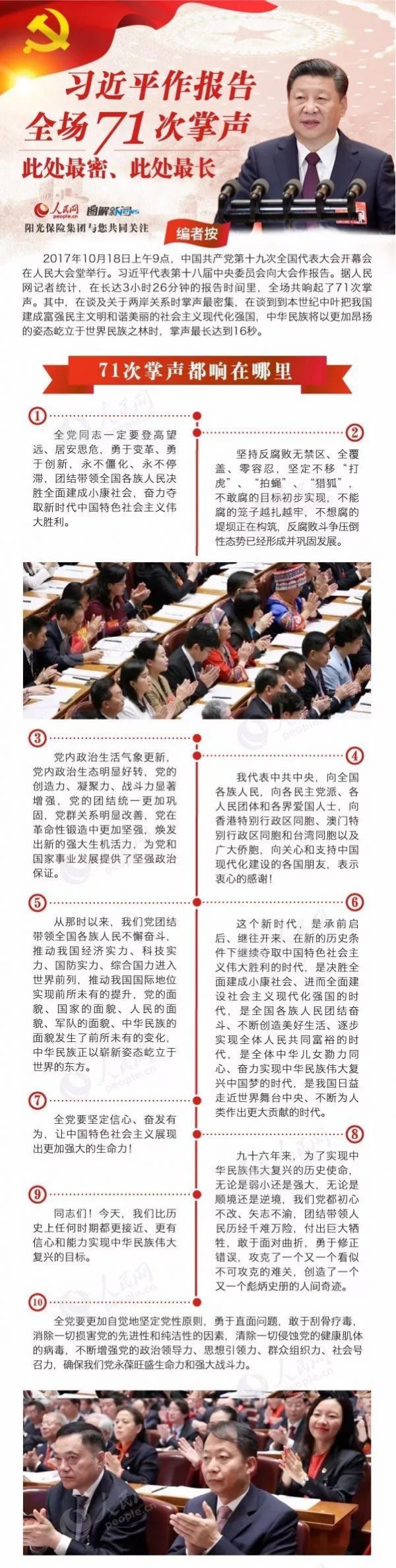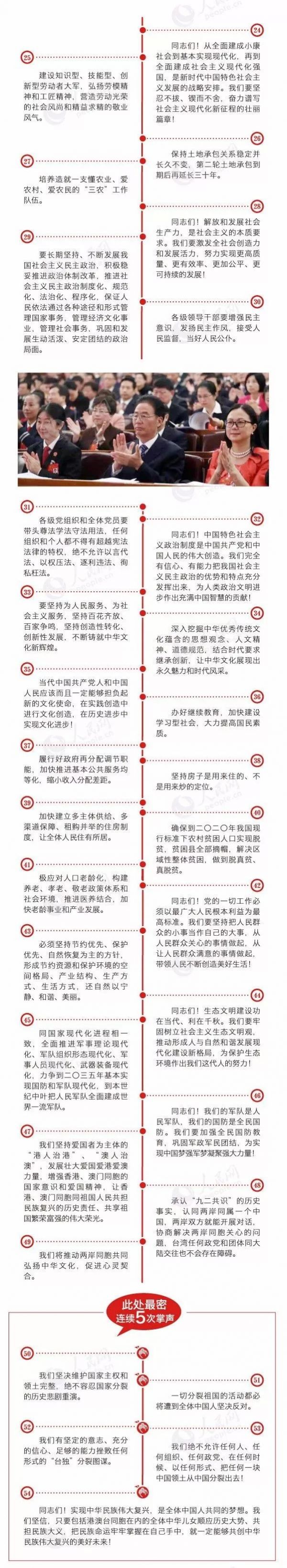 图解:习近平作报告全场71次掌声 此处最密、此处最长