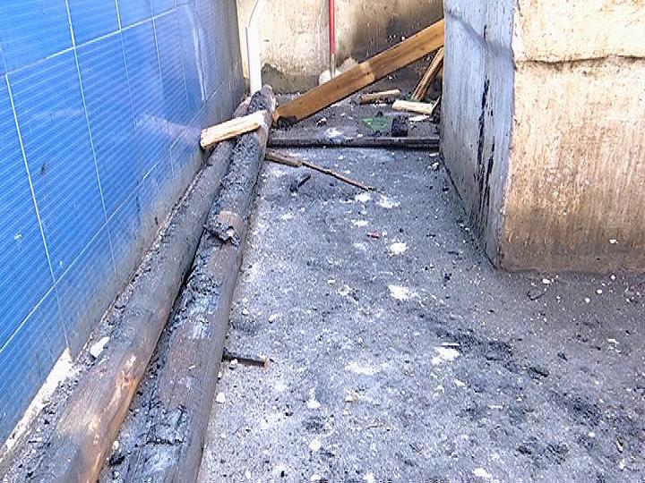 小区居民 操时财:晚上8点多,带着10岁的孙女睡觉,然后被一阵火声吵醒了,醒来发现门口起了火。