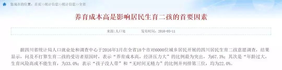 2018年1月18日,国家卫计委计划生育基层指导司负责人曾表示,民众生育意愿和生育行为受经济社会因素影响更加明显。调查显示,民众不打算再生育的原因主要是养育成本高、托育服务短缺、女性职业发展压力大,等等。