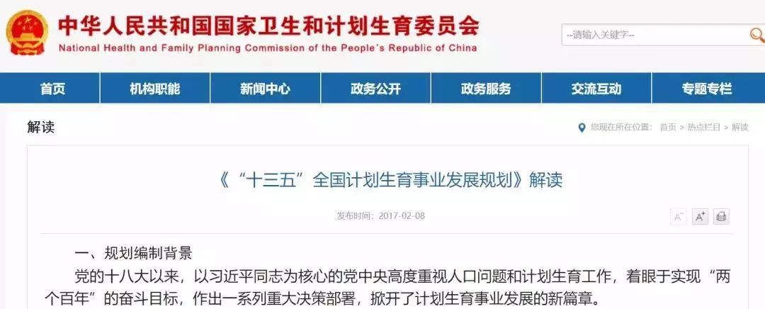 2017年2月,国家卫计委印发《“十三五”全国计划生育事业发展规划》,其中明确要求,到2020年总和生育率要从2015年的1.6回升到1.8的水平,年均自然增长率保持在6‰左右。